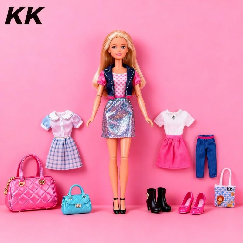 包含娃娃+5套服饰+梳妆配件,安全染料,细节精致。